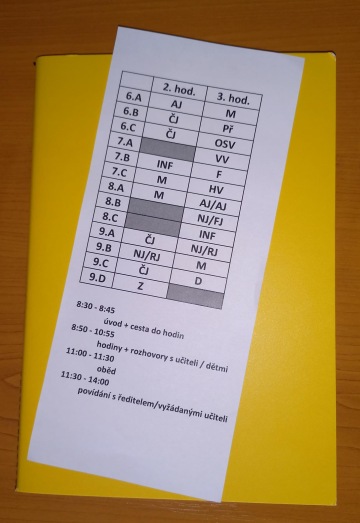 V rámci prvního dne jsme měli v plánu návštěvu ve dvou různých školách. Polovina z nás se vydala do prvostupňové ZŠ Vřesina. V této škole všichni učitelé prošli výcvikem RWCT a každý týden plánují i vyučují některé hodiny v tandemu, aktivně se s dětmi podílejí i na komunitních akcích obce. Vládne tu bezpečné prostředí, kde páťačka neváhá říct při povídání s našimi studenty paní ředitelce, že “její informatika” je nejméně zajímavý předmět - a paní ředitelka s úsměvem odpoví, že ví, že má ta žákyně jiné silné stránky a co se jí minulý týden hodně povedlo. Studenti pozorovali dvě různé tandemové hodiny a měli možnost reflektovat je s učiteli a poté diskutovat s vedením školy i se žáky. Odpoledne si vyzkoušeli plánování tandemové výuky s podporou konzultantky z Pomáháme školám k úspěchu. Zpět k ubytování jsme se vydali příjemnou cestou přes les.
