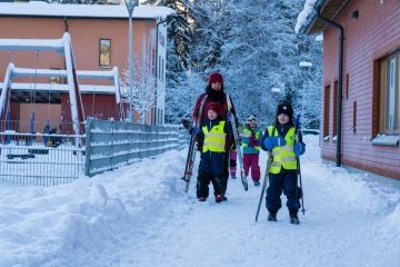 No, a také upřímně: děti o velké přestávce a o obědové pauze musí vyběhnout ven na vzduch a tam sportovat. Myslím, že to je možná ten zázračný recept finského školství na klidné a vyrovnané děti. Prostě je vyženou ven na mráz se “vyšťavit” a ony se pak mohou při hodině soustředit :-).