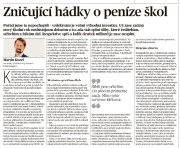 Komentář Martina Kozla: Zničující hádky o peníze škol
