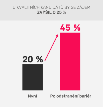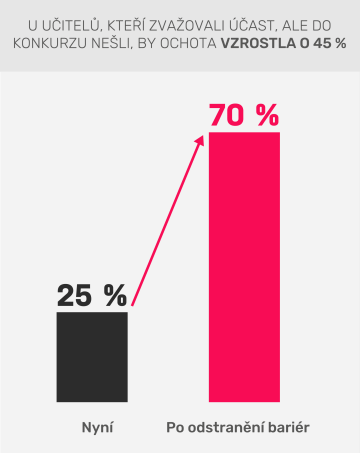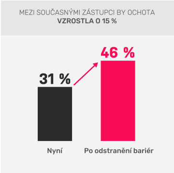 - Po odstranění klíčových bariér by se v budoucnu do konkurzu přihlásilo 46 % zástupců, bez odstranění bariér pouze 31 %