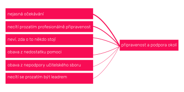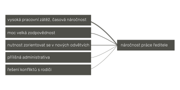 - Uchazeči a uchazečky zde vnímají jako větší bariéru také nutnost se zorientovat v různých odvětvích (28 % vs. 15 % na velkých školách) pro zvládnutí všech činností spojených s ředitelskou funkcí.
