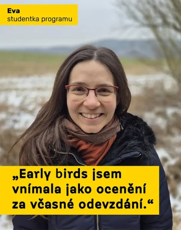 Eva: Early birds jsem vnímala jako ocenění za včasné odevzdání. Jsem zvyklá věci dělat dřív, abych získala časovou rezervu, kdyby děti vytvořily neočekávaný program. Zároveň mi to přišlo jako ochrana našich vzdělavatelů před přetížením žádostmi odevzdaných na poslední chvíli.